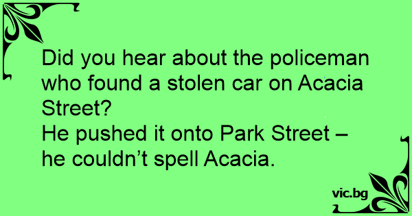 Did you hear about the policeman who found a stolen car on Acacia Street?
