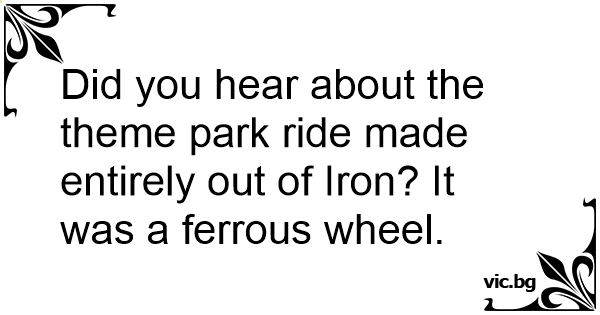 Did you hear about the theme park ride made entirely out of Iron? It was a ferrous wheel.