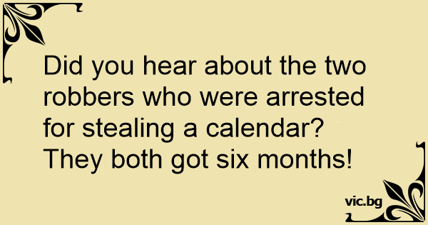 Did you hear about the two robbers who were arrested for stealing a calendar?