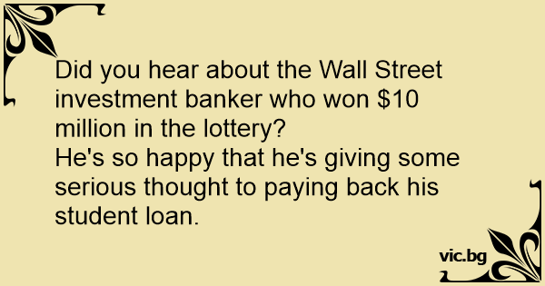Did you hear about the Wall Street investment banker who won $10 million in the lottery?