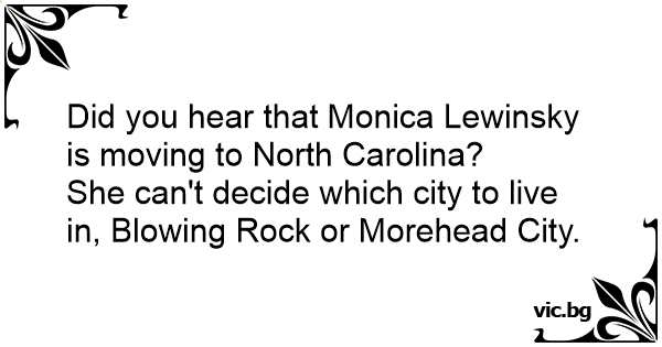 Did you hear that Monica Lewinsky is moving to North Carolina?