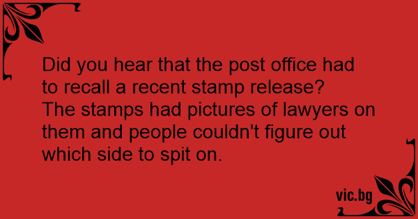 The stamps had pictures of lawyers on them and people couldn't figure out which side to spit on.