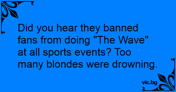 Did you hear they banned fans from doing "The Wave" at all sports events? Too many blondes were drowning.