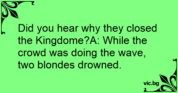 Did you hear why they closed the Kingdome?A: While the crowd was doing the wave, two blondes drowned.