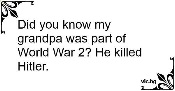 Did you know my grandpa was part of World War 2? He killed Нiтlеr.