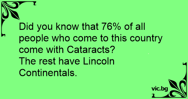 Did you know that 76% of all people who come to this country come with Cataracts?