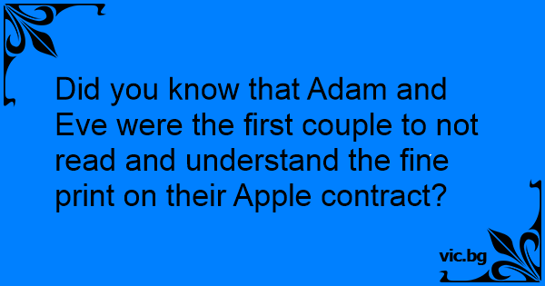 Did you know that Adam and Eve were the first couple to not read and understand the fine print on their Apple contract?
