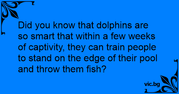 Did you know that dolphins are so smart that within a few weeks of captivity, they can train people to stand on the edge of their pool and throw them fish?
