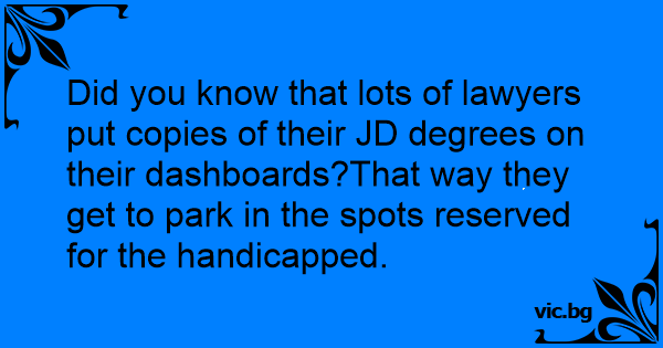 Did you know that lots of lawyers put copies of their JD degrees on their dashboards?That way they get to park in the spots reserved for the handicapped.