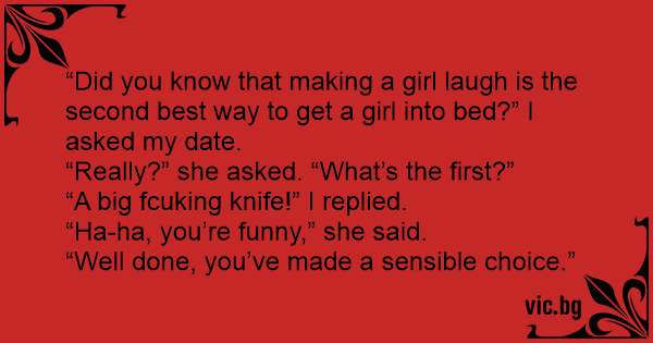 “Did you know that making a girl laugh is the second best way to get a girl into bed?” I asked my date.