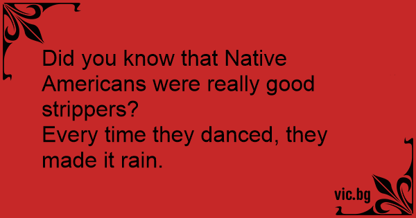 Did you know that Native Americans were really good strippers?<br />Every time they danced, they made it rain.