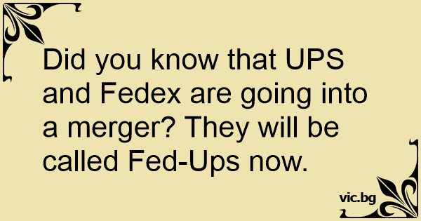 Did you know that UPS and Fedex are going into a merger? They will be called Fed-Ups now.