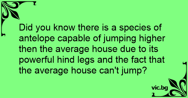 Did you know there is a species of antelope capable of jumping higher then the average house due to its powerful hind legs and the fact that the average house can't jump?