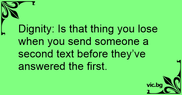 Dignity: Is that thing you lose when you send someone a second text before they’ve answered the first.