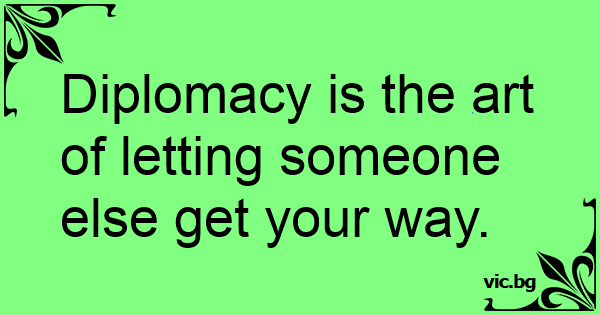 Diplomacy is the art of letting someone else get your way.