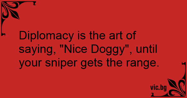 Diplomacy is the art of saying, "Nice Doggy", until your sniреr gets the range.