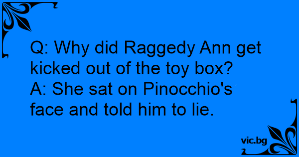 - Varför fick Snövit sparken från Disney? - Dom hittade henne över Pinocchios näsa, skrikandes: - Ljug din jävel, ljug...