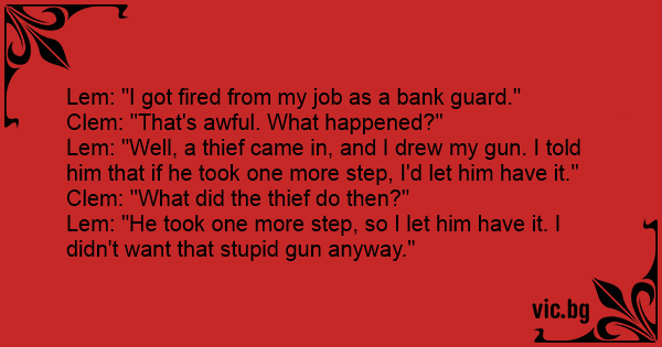 Lem: "Well, a thief came in, and I drew my gun. I told him that if he took one more step, I'd let him have it."