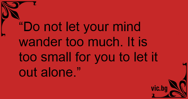 “Do not let your mind wander too much. It is too small for you to let it out alone.”