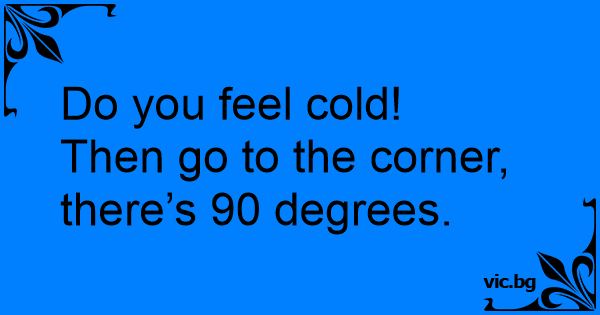 - Jag fryser. - Ställ dig i ett hörn. - Men hur kan det hjälpa mig? - Jo, i ett hörn är det alltid 90 grader.