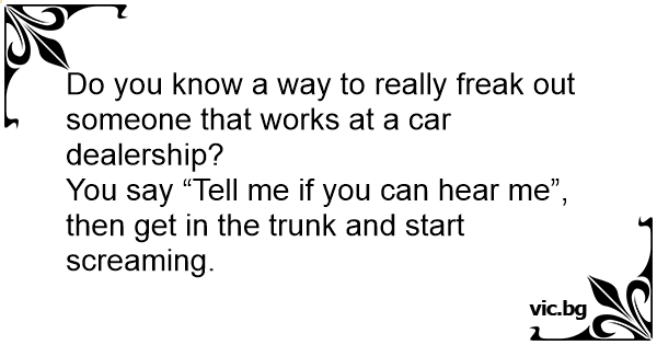Do you know a way to really freak out someone that works at a car dealership?