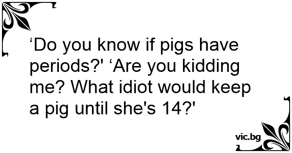 ‘Do you know if pigs have periods?' ‘Are you kidding me? What idiот would keep a pig until she's 14?'