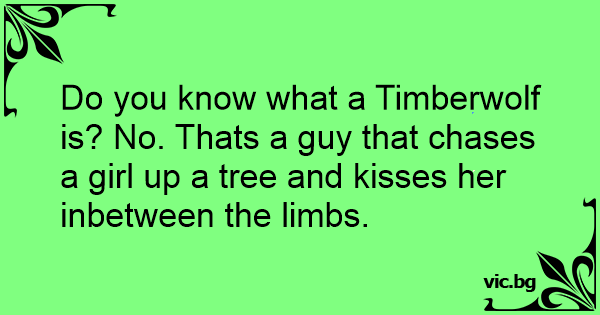 Do you know what a Timberwolf is? No. Thats a guy that chases a girl up a tree and kisses her inbetween the limbs.