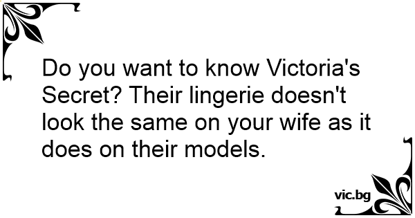 Do you want to know Victoria's Secret? Their lingerie doesn't look the same on your wife as it does on their models.
