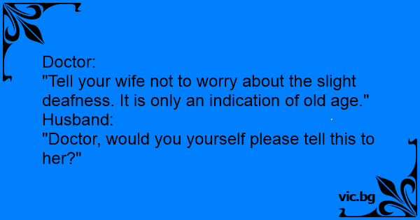 "Tell your wife not to worry about the slight deafness. It is only an indication of old age."