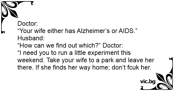 “Your wife either has Alzheimer’s or AIDS.” Husband: