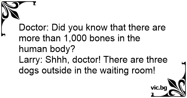 Larry: Shhh, doctor! There are three dogs outside in the waiting room!