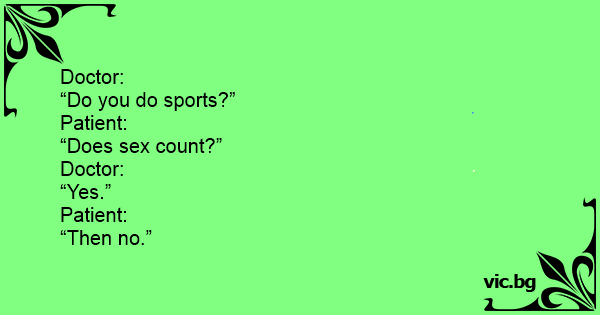 При доктора: - Спортувате ли? - А се-кса брои ли се? - Естествено, че се брои! - Е, тогава не ...