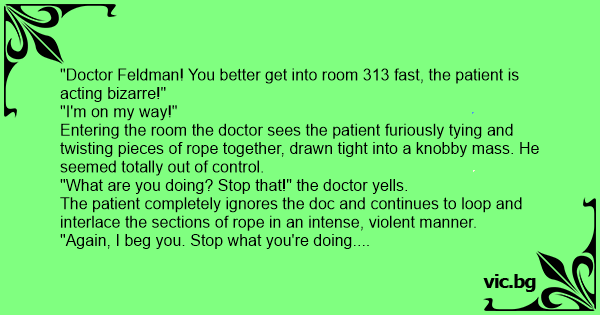 "Doctor Feldman! You better get into room 313 fast, the patient is acting bizarre!"