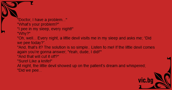 "Oh, well... Every night, a little devil visits me in my sleep and asks me; “Did we рее today?”.