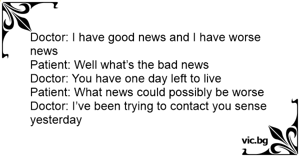Doctor: I have good news and I have worse news