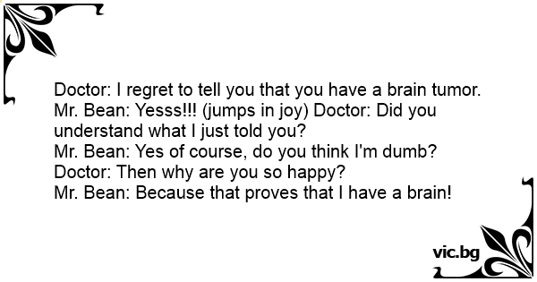 Mr. Bean: Yesss!!! (jumps in joy) Doctor: Did you understand what I just told you?
