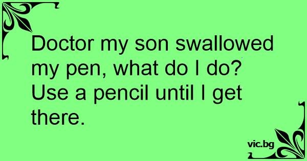 Patient: "Doctor, my son has swallowed a pen. What can I do?" Doctor: "Use a pencil till I come to see your son."