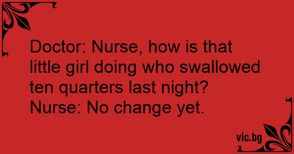 Doctor: Nurse, how is that little girl doing who swallowed ten quarters last night?
