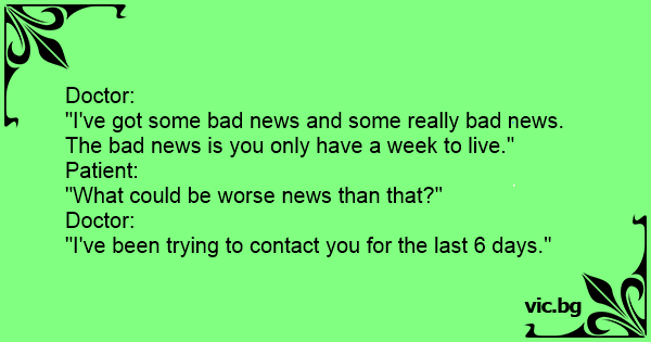 "I've got some bad news and some really bad news. The bad news is you only have a week to live."
