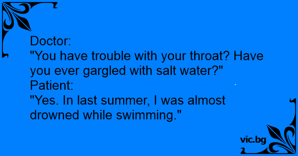 "You have trouble with your throat? Have you ever gargled with salt water?"