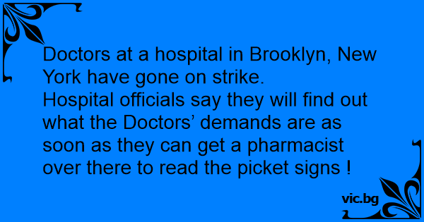 Hospital officials say they will find out what the Doctors’ demands are as soon as they can get a pharmacist over there to read the picket signs !