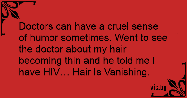 Doctors can have a cruel sense of humor sometimes. Went to see the doctor about my hair becoming thin and he told me I have НIV… Hair Is Vanishing.