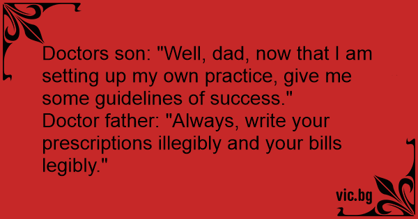 Doctor father: "Always, write your prescriptions illegibly and your bills legibly."
