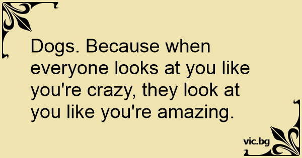 Dogs. Because when everyone looks at you like you're crazy, they look at you like you're amazing.