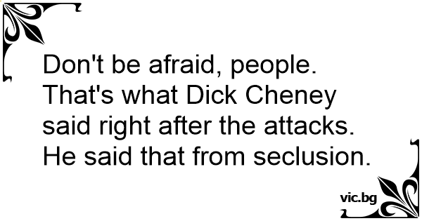 Don't be afraid, people. That's what Diск Cheney said right after the attacks. He said that from seclusion.