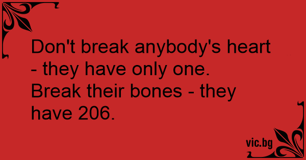 Never break someone's heart because they have only one inside... Break their bones because they have 206 of them.
