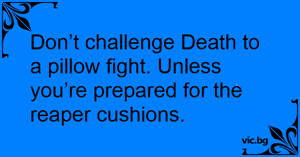 Don’t challenge Death to a pillow fight. Unless you’re prepared for the reaper cushions.