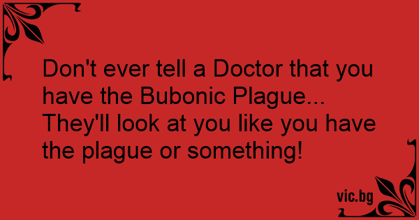 Don't ever tell a Doctor that you have the Bubonic Plague...