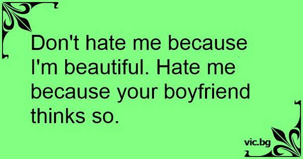Don't hate me because I'm beautiful. Hate me because your boyfriend thinks so.