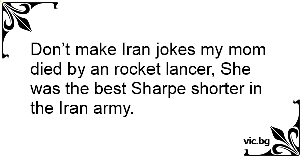 Don’t make Iran jokes my mom died by an rocket lancer, She was the best Sharpe shorter in the Iran army.